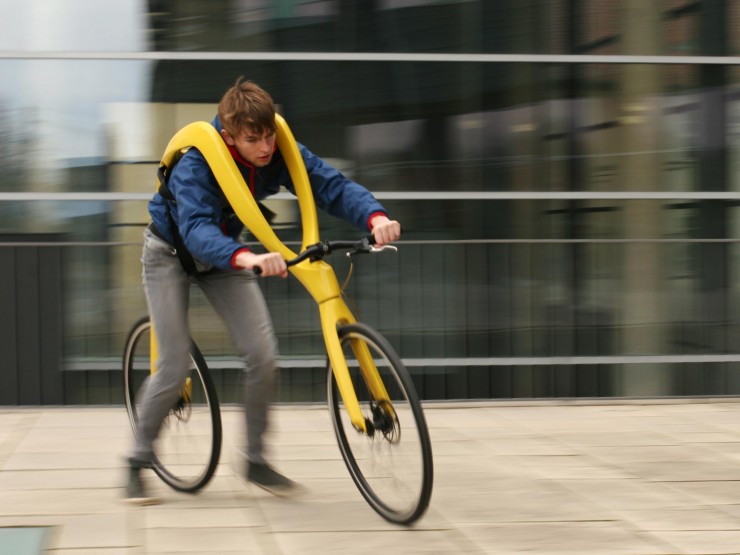 Αποτελείται από ένα σασί σε σχήμα ενός τεράστιου U και ένα λουρί που σου επιτρέπει να κρέμεσαι κυριολεκτικά από αυτό. Κατά τα άλλα, διαθέτει τροχούς, τιμόνι και φρένα, διατηρώντας σε αυτά τα σημεία τις ομοιότητες με το ποδήλατο που έχεις στην κατοχή σου.