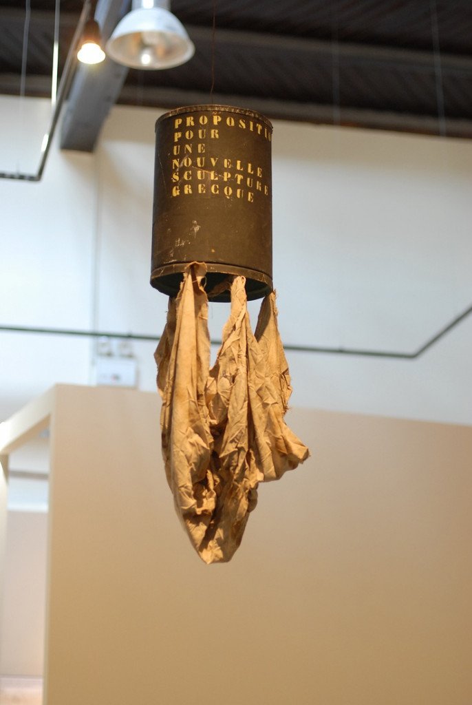 Επιδιώκοντας να δώσει προτεραιότητα στην αντικειμενοποίηση της χειρονομίας (το τσαλάκωμα της χειρονομίας) παρά στο καθ’αυτό αντικείμενο, αναζητά εύπλαστα, ετερόκλητα φτωχά υλικά, εγκαταλελειμμένα σπαράγματα που μεταφέρουν, σαν οχήματα μνήμης, ίχνη παλαιότερων έργων, ευτελή υλικά που επιτρέπουν πολύτροπες επεμβάσεις (μεταλλικά πλέγματα, κλωστές, ξύλα, γάζες, ηλεκτρικά καλώδια, μεταλλικά φθαρμένα αντικείμενα).[…] Τα διάφανα αέρινα πλέγματα, οι γυψωμένες αυθόρμητες χειρονομίες, τα λερωμένα πανιά, τα σύρματα, οι ξεκολλημένες αφίσες και οι γυψωμένοι σάκοι, σαν «παιχνίδια» κινήσεων αρνούμενα τη ζωγραφική επέμβαση, ενισχύουν την αντικειμενοποίηση της ιδιοποιητικής χειρονομίας που εγκλωβίζει την τραυματισμένη, υπό συνεχή διέγερση, μνήμη. Το χρώμα περνά στο λευκό, η ζωγραφική πινελιά ουδετεροποιείται και εξαφανίζεται.[…]